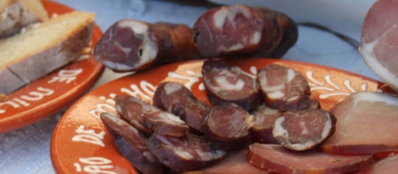 Paio, paiola alentejana, linguiça e presunto de porco preto de Beja. Enchidos de Portalegre.